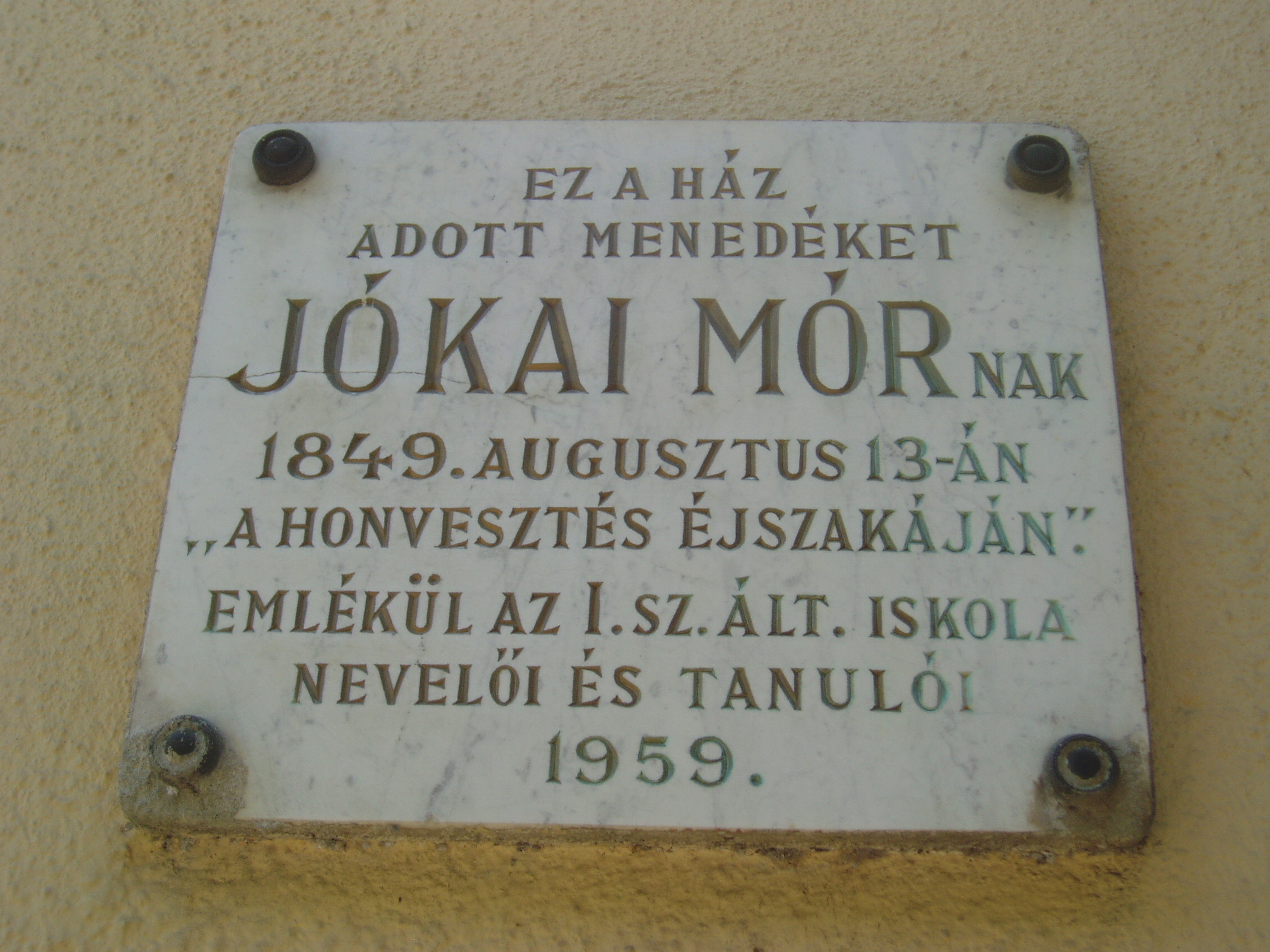 Nyilvános 1045 | 1682 | Gyula, Kossuth utca 30. | Az Almásy-kastélyhoz vezető kőhíddal egyvonalban, az utca túlsó oldalán álló földszintes lakóház egykor Erkel Rezső (Rudolf) vármegyei főorvos, Erkel Ferenc öccse lakása volt, ahol a zeneköltő is gyakran megfordult (János testvérük a szomszédban, a mai 28. szám alatt lakott). Jókai Mór két ízben is megfordult a házban. Először Laborfalvy Rózával 1848. augusztus 29-én kötött házasságuk után voltak a ház vendégei (Erkel Rezső korábban a Nemzeti Színház orvosa volt, onnét ismerték egymást). 1849 júliusában, a szabadságharc vége felé Jókai, Pestről elmenekülve az Erkel család vendégszeretetére bízta feleségét, akivel együtt volt a kor kiváló operaénekesnője, Schodelné Klein Róza is, akik a ház két udvari szobájában húzták meg magukat. Ide tért vissza Jókai feleségéért a világosi fegyverletétel után. Erről szól "Egy napom Gyulán" című szívszorító írása: "Ez volt életem legszomorúbb napja. 1849. augusztus 13-án nyitottam be a gyulai Erkel ház ajtaján ezzel a szóval: nincsen hazánk”. Jókai innét utazott álöltözetben, hamis papírokkal Tardonára. 1860-tól haláláig ebben a házban élt Erkel Ferencné Ádler Adél, miután különvált férjétől. Gyulán hunyt el, sírja a Szentháromság-temetőben van. Az épületen Erkel Rudolf, Ádler Adél és Jókai Mór emlékét márványtáblákon örökítették meg. A fénykép 2007 júliusában készült. Felh. irod.: Czeglédi Imre: Gyula útikalauz. 2. jav., bőv. kiad. Gyula, 1995 |