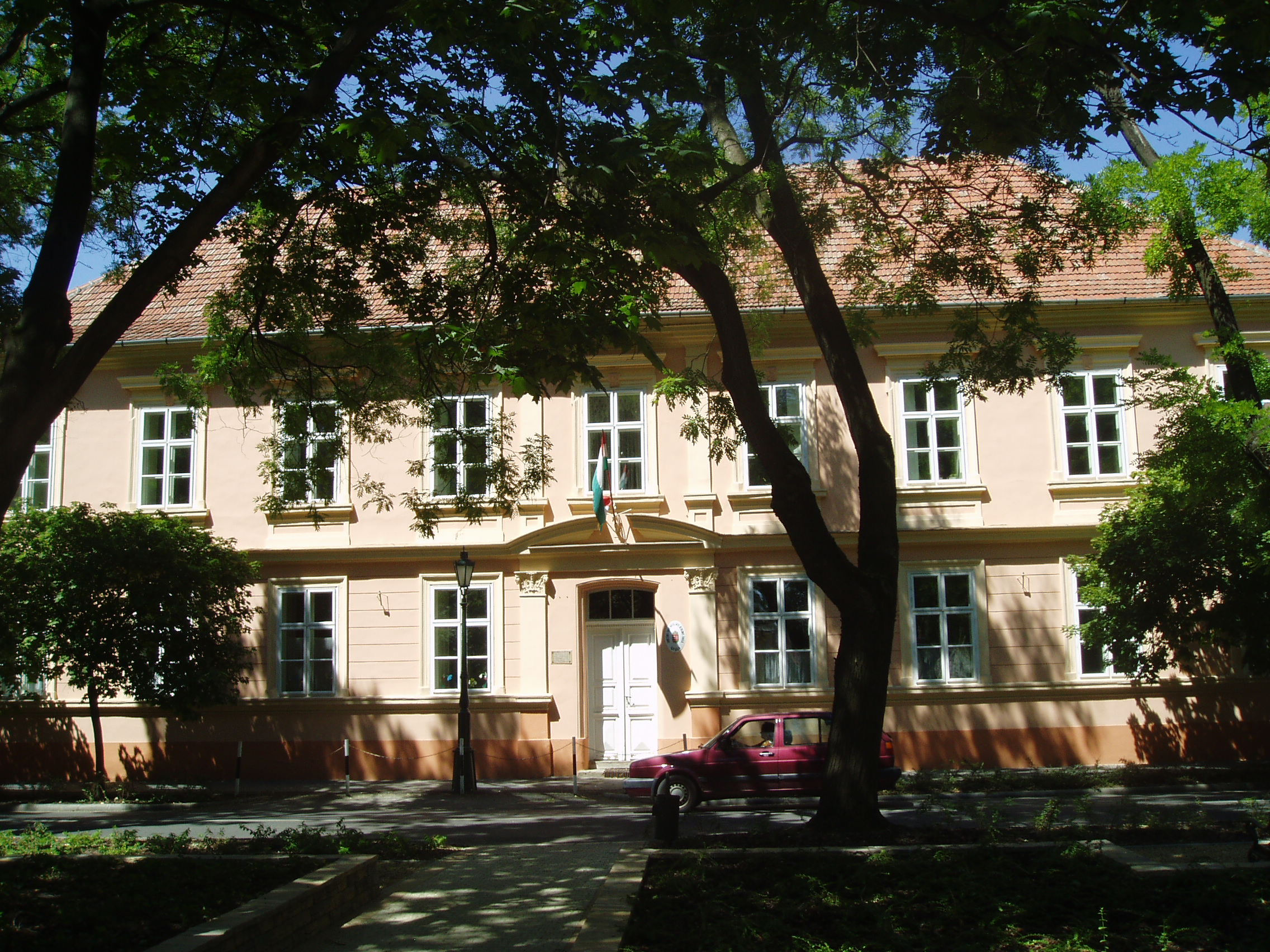 Nyilvános 1015 | 1601 | Gyula, Petőfi tér 5. Római Katolikus Általános Iskola | Az épület története a török előtti időkre nyúlik vissza. Déli szárnyának földszinti része már 1518-ban szerepel a város történetében: ez volt a város fürdőháza. A törökök kibővítve rituális fürdőnek használták. Kiűzésük az akkor kupolákkal fedett épületet a reformátusok kapták meg imaháznak. Melléje Wenckheim József földesúr iskolát építtetett, amely később megkapta az egykori fürdőházat is. Az 1800-as évek első harmadában két ízben is emeletráépítéssel bővítették az egyesített épületet, ekkor alakult ki mai, klasszicista arculata. 1965-ben a 48-as utca felől oda nem illő szárnnyal bővítették. 1819/20-ban ebbe az iskolába járt a kis Erkel Ferenc, s itt tanult Pálffy Albert is. E falak között alapította meg a város első közkönyvtárát 200 kötetes adományával Mogyoróssy János. 1849-ben Damjanich kórházának egy részlege működött benne. 1857-ben itt nyitották meg az első gyulai rajziskolát, melynek tanára, Karl Fischer bécsi festő volt a fiatal Munkácsy Mihály első tanára. A fénykép 2007 júliusában készült. Felh. irod.: Czeglédi Imre: Gyula útikalauz. 2. jav., bőv. kiad. Gyula, 1995 |