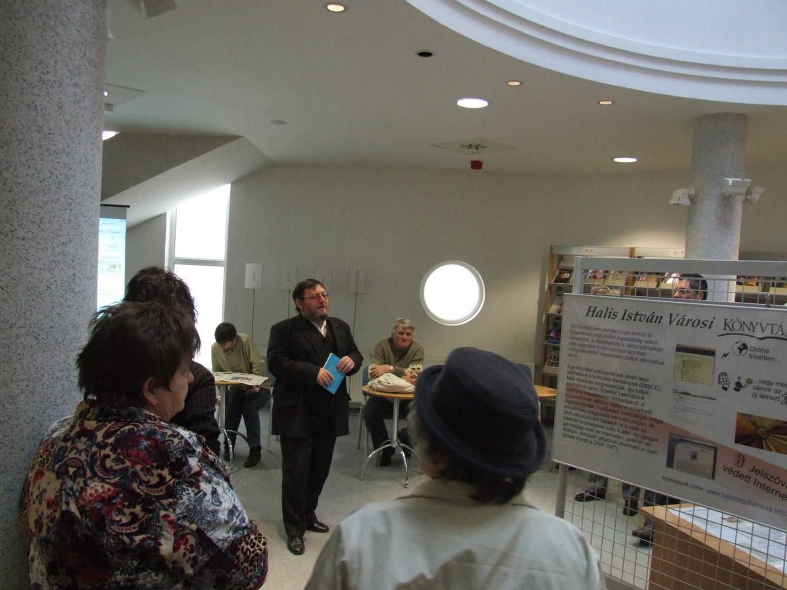 Nyilvános 1496 | 3685 | 2008. január 22. 10 óra: A magyar kultúra napja a Halis István Városi Könyvtárban – A könyvtár szolgáltatásait bemutató kiállítás megnyitója | Megnyitja: Czupi Gyula igazgató Megtekinthető: 2008. február 22-ig A kiállítás eddigi poszterei az alábbi cím alatt tekinthetők meg: http://www.halisnagykanizsa.bibl.hu/poszterek/index.htm A 2008-as Magyar Kultúra Napja további programjairól: http://www.nagykar.hu/esemenynaptar/1/1346.html |