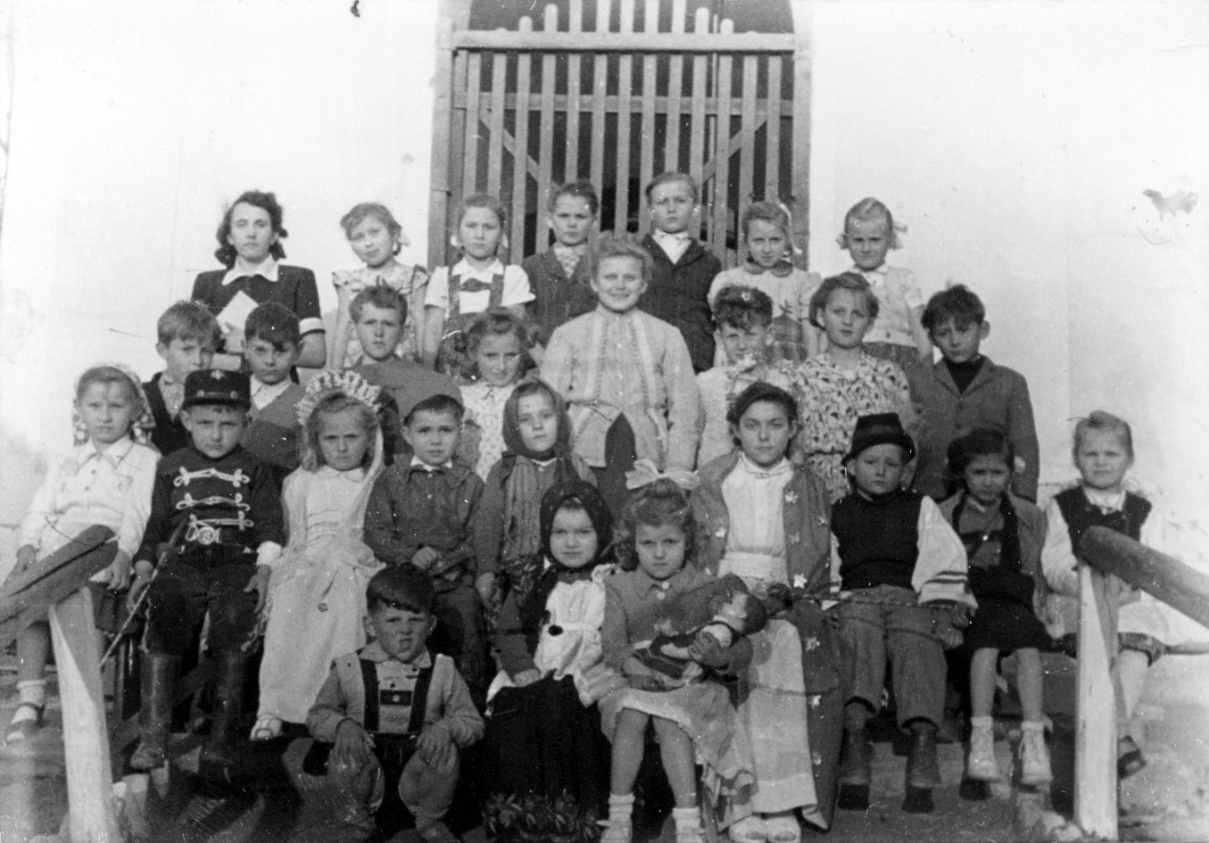 1953 körül. Iskolai osztály a templom előtt.