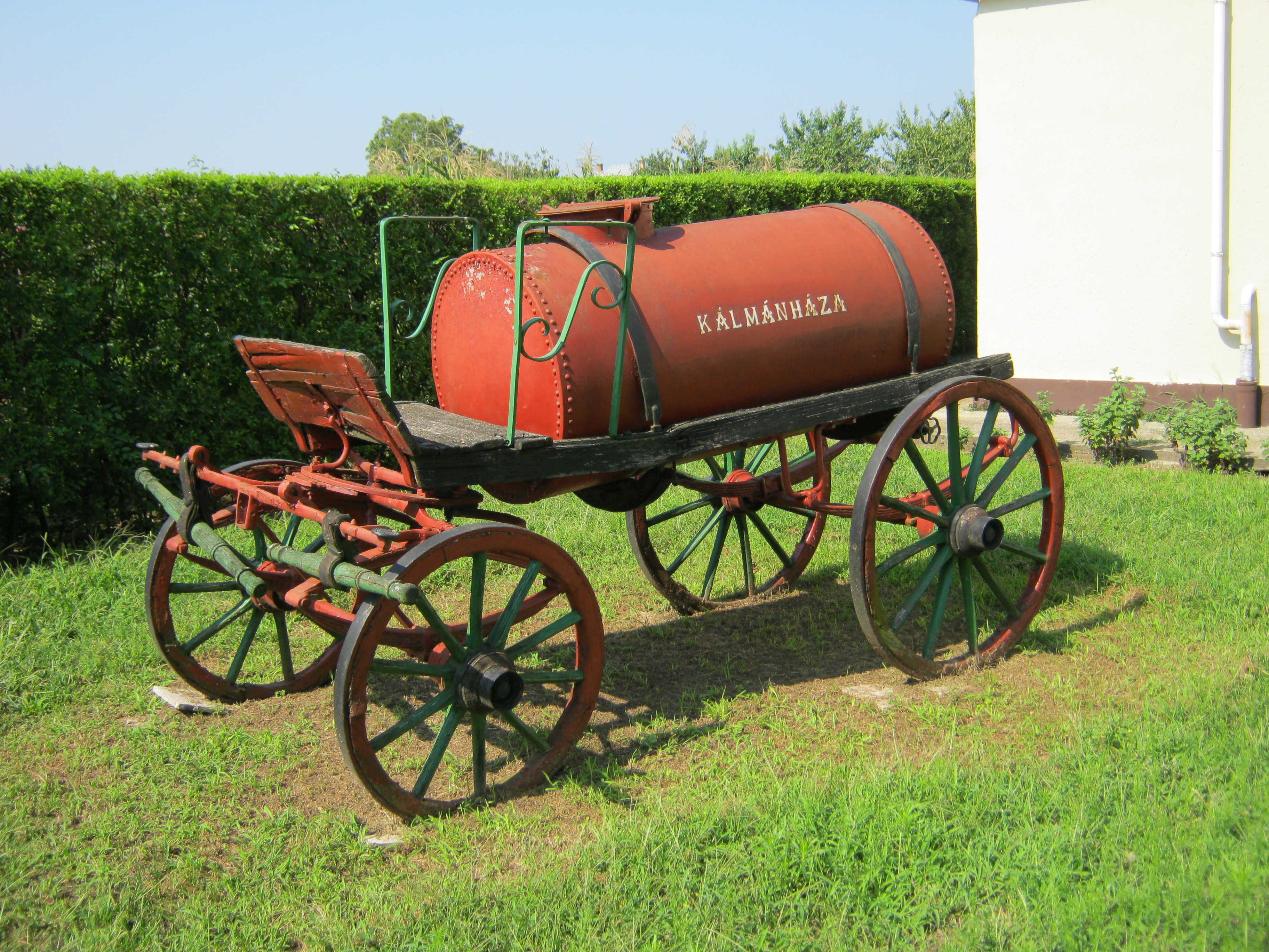 Nyilvános 1430 | 3066 | Kálmánháza, Kossuth utca 53. | 1921. november 25-én itt, az egykori tanyasi iskola udvari lakóépületében, a kántortanító egyetlen, későn érkezett gyermekeként született Rákos Sándor költő. Közelmúltban megjelent monográfiájában írta Valachi Anna: "Legszűkebb hazája - a falusi iskola, a hozzá tapasztott tanítói lakással, tágas udvarral, gyümölcsössel, konyhakerttel - meghatározó jelentőségű volt a kisfiú életében. Mindent, amit a világról gyerekfejjel tudni lehet, itt szívta magába." Rákos Sándor így emlékezett: "Egyvalamire voltam igazán büszke: arra, hogy ő [édesapja] a tűzoltóparancsnok, vízhörpölő óriástömlők, kígyózó gumicsövek, a hősiesen csörömpölő tűzoltókocsi ura..." Az épületben ma a költő nevét viselő szociális otthon működik, udvarán szépen felújítva ott látható az egykori tűzoltó-felszerelés két kocsija. Felh. irod.: Valachi Anna: Csigavonalban a Parnasszusra - Rákos Sándor földi poklai és táguló költői világa. Bp. Argumentum, 2009 A fénykép 2010 augusztus elején készült. |