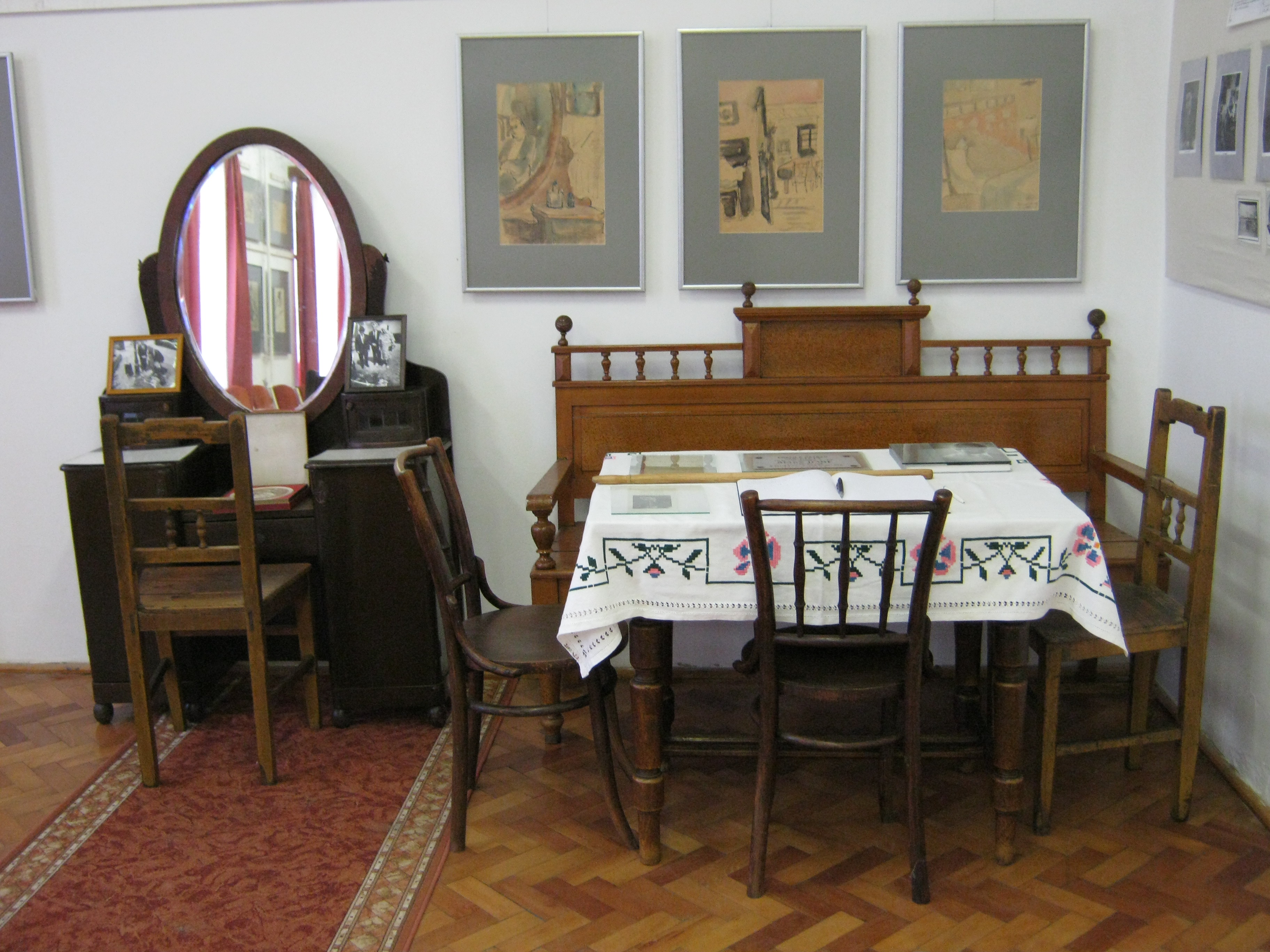Nyilvános 1048 | 1440 | Nagykálló, Szabadság tér 5-8. | Az általános iskola épületében tekinthető meg az Ámos Imre Képtár. A tragikus sorsú festőművész Nagykállón született "a piac melletti Zsidó utcában" 1907. december 7-én Ungár Imre néven. Elemi és középiskolába is itt járt. 1944 nyarán a németországi Ohrdruf lágerébe hurcolták, halálának napja nem ismert. Harsányi Gézáné helytörténész így jellemzi: "Egyszerre volt tehetséges festő, mindhalálig verselgető, irodalmi értékű naplót vezető és a zene szépségeire megrezdülő, hegedűn kiválóan játszó művészlélek". Itt látható képeit felesége, Anna Margit ajándékozta Nagykállónak. Felh. irod.: Harsányi Gézáné: Kálló kincsei. Nagykálló, 2007 A fénykép 2010 augusztus elején készült. |