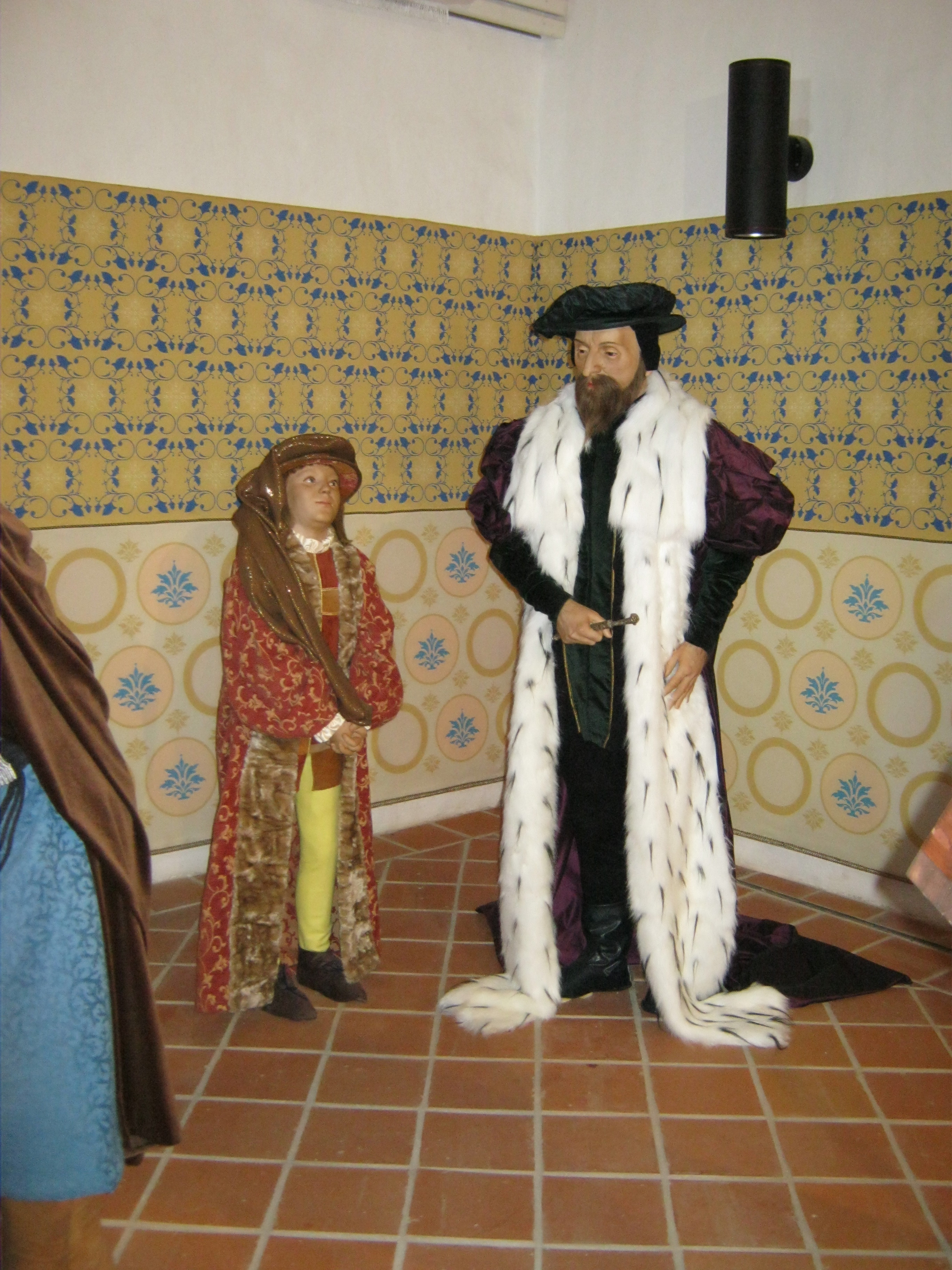 Nyilvános 994 | 1403 | Nyírbátor, Vár utca 1. Báthori várkastély | A Báthoriak várkastélyának többször átalakított egyetlen megmaradt épületét a közelmúltban állították helyre. Pincéjében reneszánsz étterem látogatható, földszintjén és emeletén a Báthori Panoptikum 45 élethű és korhű viaszfigurában mutatja be érzékletesen a jeles nemesi család és Nyírbátor történetét. A figurák tervezője és készítője Megyeri János szobrászművész. A megtekintést olvasható és hallgatható kalauzolás kíséri. A kiállítást a kenyérmezei csata 530. évfordulóján, 2009.október 13-án adták át. Az 1479-ben a törökkel vívott csata egyik hőse Báthori István volt. A képen a kis János Zsigmond és I. Ferdinánd király figurái. Felh. irod.: Látnivalók Szabolcs-Szatmár-Bereg megyében. Miskolc, Well-PRess, 1999 www.bathorivarkastely.hu A fénykép 2010 augusztus elején készült. |