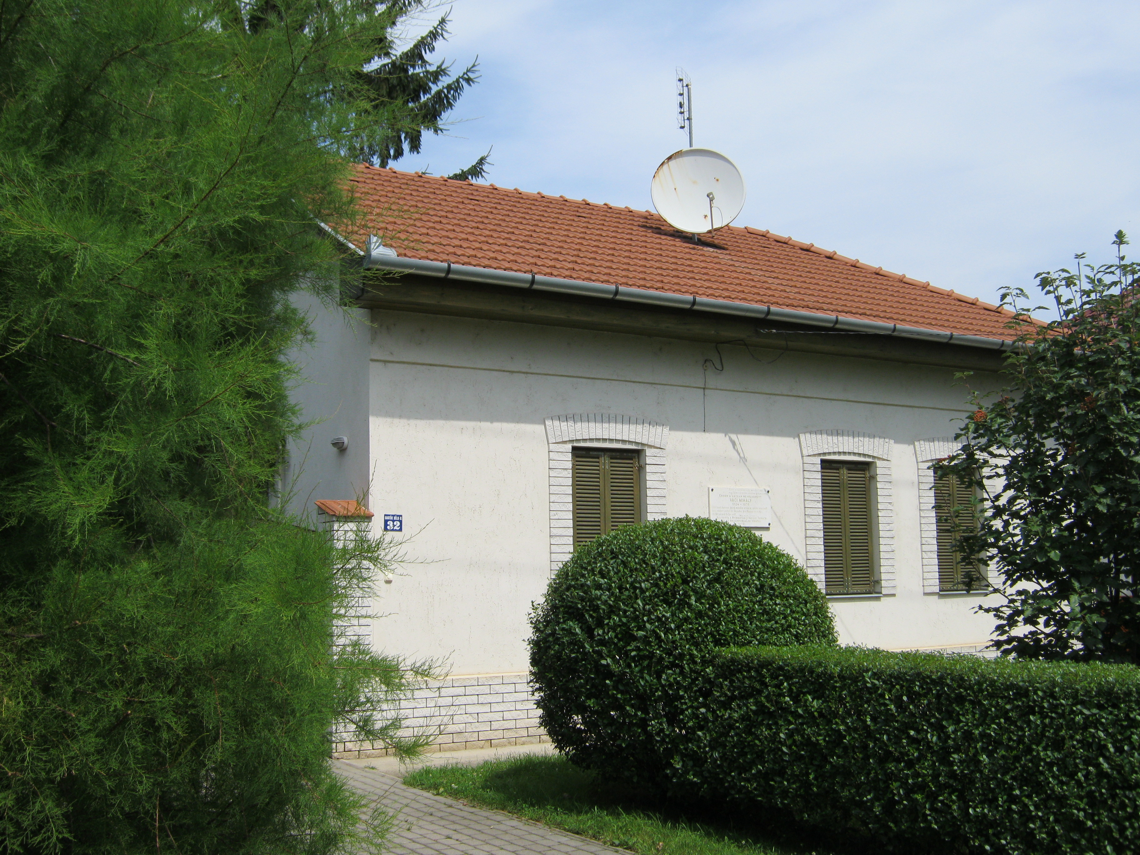Nyilvános 1046 | 1399 | Nyíregyháza, Bartók Béla utca 32. | Mielőtt a Debrecen felé vezető műút átszelné a vasútvonalat, Nyíregyháza központjától távol, a Bartók Béla utcában ma is álló családi házon emléktáblát találunk: "Ebben a házban nevelkedett Váci Mihály". A Szeder utca 59. alatt egykor álló zsúptetős cselédházban született (oda sajnos nem jutottam el, a mai épületet ott is emléktábla jelöli). Életrajzírója, Kovács Sándor Iván így jellemzi gyermekkori környezetét: "Nincs még egy költőnk Illyés Gyula óta, akinek indulását oly meghatározó erővel befolyásolná szülőföld és családi környezet, mint Váci Mihályét. Szülőföldjéről egyszerre hozta magával a nyírségi tájak és a szociális nyomorúság élményét; a tébécé halálos fenyegetésén kívül egyedül ezt jussolta 'névtelen kis cseléd' őseitől, s költészetének és prózájának mindvégig éltető közege ez a kettős inspiráció." A költő 15 éves koráig lakott egy szobában csont-tuberkulózisban szenvedő nagyanyjával. Hat testvére közül csak egy maradt életben. Ebből a közegből származva végezte el a tanítóképzőt (lásd: Nyíregyháza, Széchenyi u. 6.), majd pályáját tanyasi tanítóként kezdte. Váci Mihály nyíregyházi emlékhelyeiről kiváló összefoglalás található itt (2010. 08. 29.): www.vacimihalykor.hu/siremlekek/nyiregyhaza.htm Felh. irod.: Kovács Sándor Iván: Váci Mihály. Bp. Akadémiai Kiadó, 1972 A fénykép 2010 augusztus elején készült. |