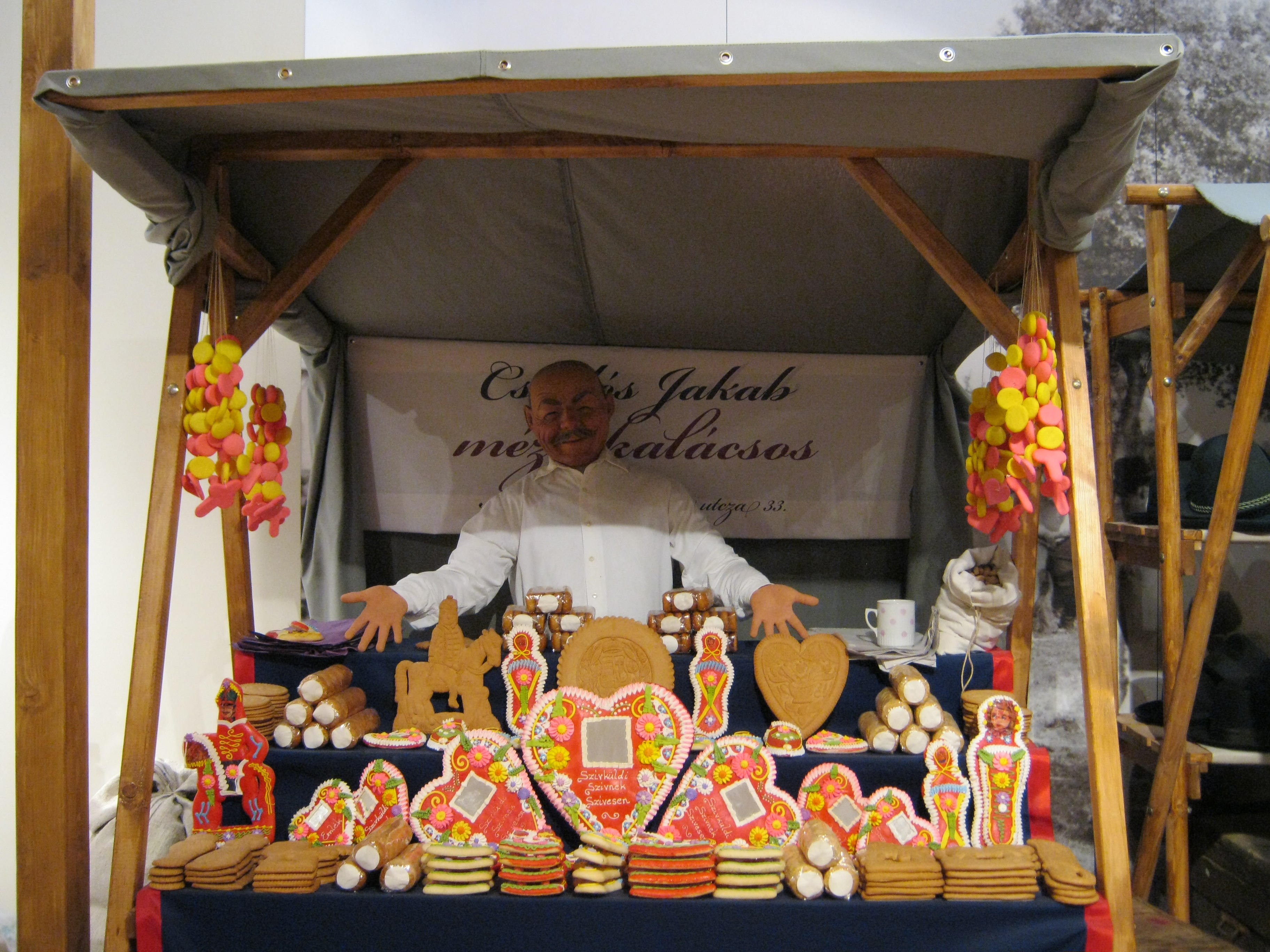 Nyilvános 1117 | 1555 | Nyíregyháza, Benczúr tér 21. Jósa András Múzeum | Magyarország egyik legrégibb múzeumát Dr. Jósa András alapította 1868-ban, akinek ma nevét viseli. Az állandó kiállítás színes részlete igazi vásári hangulatot idéz. A látványt a vásári nyüzsgés hangjai, az árusok rímes kínálgatása egészíti ki, teljes élményt adva a látogatónak. Felh. irod.: Látnivalók Szabolcs-Szatmár-Bereg megyében. Miskolc, Well-PRess, 1999 http://jam.nyirbone.hu A fénykép 2010 augusztus elején készült. |