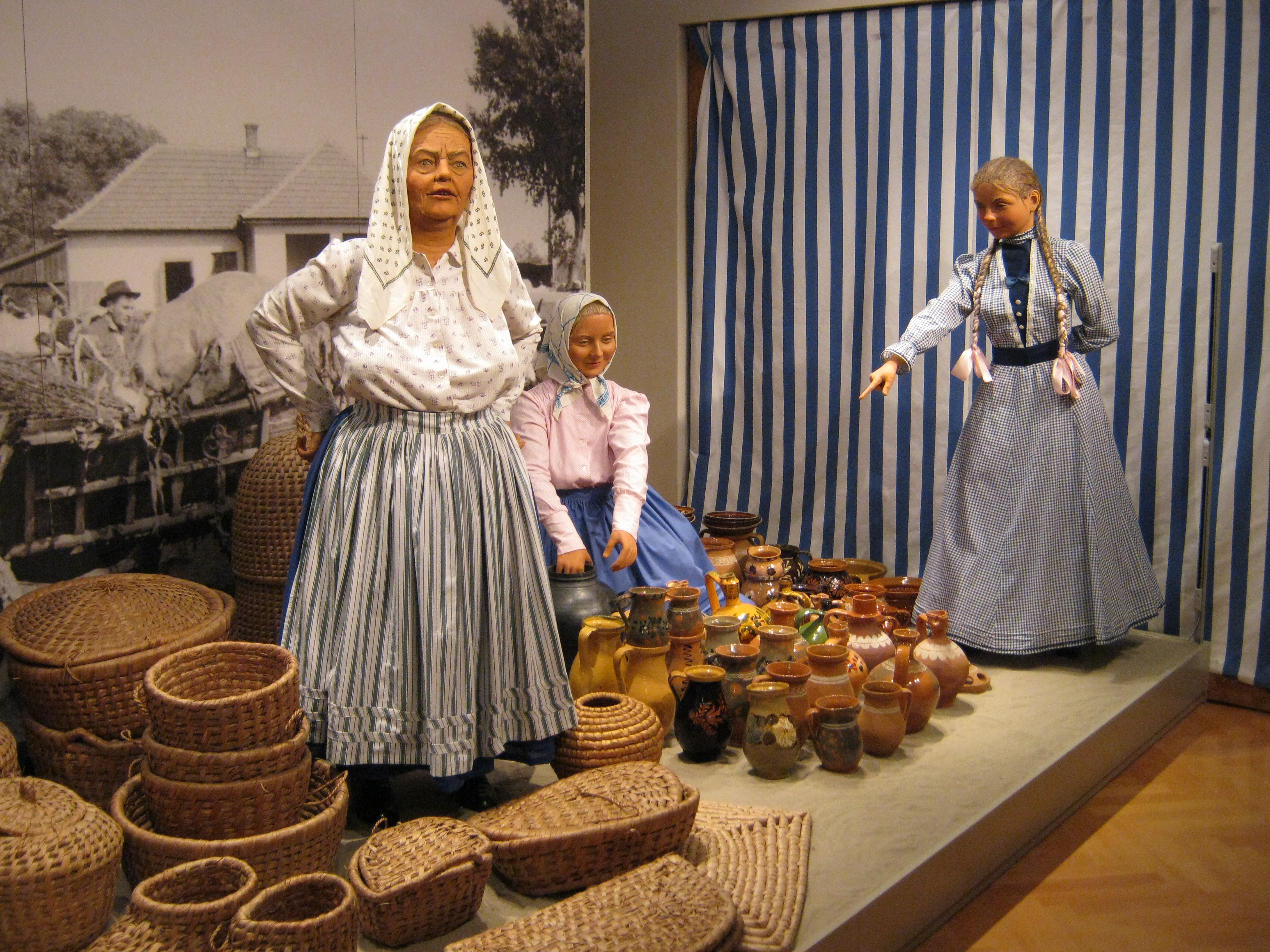Nyilvános 1063 | 1468 | Nyíregyháza, Benczúr tér 21. Jósa András Múzeum | Magyarország egyik legrégibb múzeumát Dr. Jósa András alapította 1868-ban, akinek ma nevét viseli. Az állandó kiállítás színes részlete igazi vásári hangulatot idéz. A látványt a vásári nyüzsgés hangjai, az árusok rímes kínálgatása egészíti ki, teljes élményt adva a látogatónak. Felh. irod.: Látnivalók Szabolcs-Szatmár-Bereg megyében. Miskolc, Well-PRess, 1999 http://jam.nyirbone.hu A fénykép 2010 augusztus elején készült. |