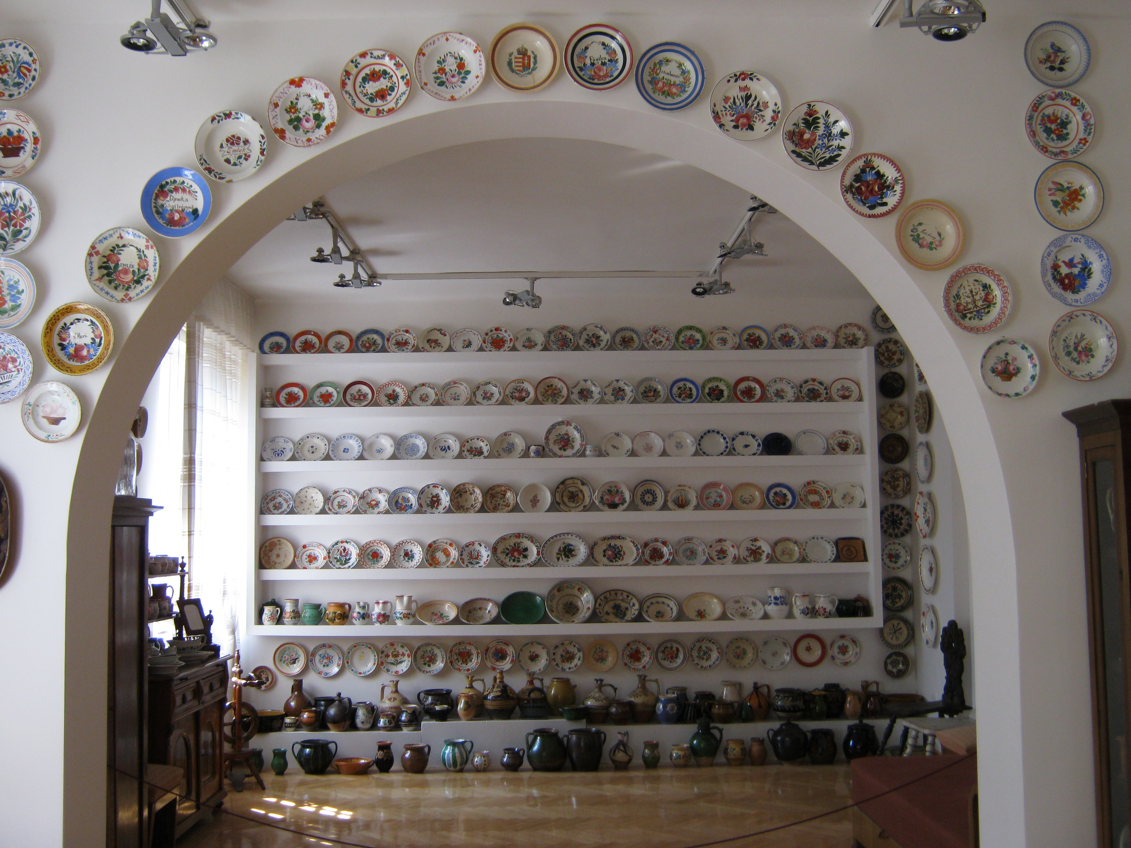 Nyilvános 1060 | 1567 | Nyíregyháza, Benczúr tér 21. Jósa András Múzeum | Magyarország egyik legrégibb múzeumát Dr. Jósa András alapította 1868-ban, akinek ma nevét viseli. Egyik állandó kiállítása a Péchy - Kovács-gyűjtemény, dr. Kovács Gyula és felesége, Péchy Mária több, mint 700 darabból álló magánygyűjteménye. Dr. Kovács Gyula nyugdíjazásáig a Debreceni Atommagkutató Intézet gazdasági igazgatója volt, felesége tanítónő. A gyűjtemény egyik részét bútorok (biedermeier szalongarnitúra, ebédlőszékek, írószekrény stb.) és ezüst evőeszközök, tálcák, gyertyatartók és más tárgyak, valamint festmények és perzsaszőnyegek alkotják. A másik rész Péchy Mária gyűjtőszenvedélyének eredménye, aki több évtizeden keresztül vásárolta, a szebbnél szebb mázas cserépedényeket, amelyek Észak-Magyarország, Erdély és az Alföld kerámiaközpontjaiban készültek. Vannak itt különböző háztartási eszközök, amelyeket egykor Péchy Mária édesanyja, nagyanyja használt: habüstök, mozsarak, sütőformák, kávédarálók. Felh. irod.: Látnivalók Szabolcs-Szatmár-Bereg megyében. Miskolc, Well-PRess, 1999 http://jam.nyirbone.hu A fénykép 2010 augusztus elején készült. |