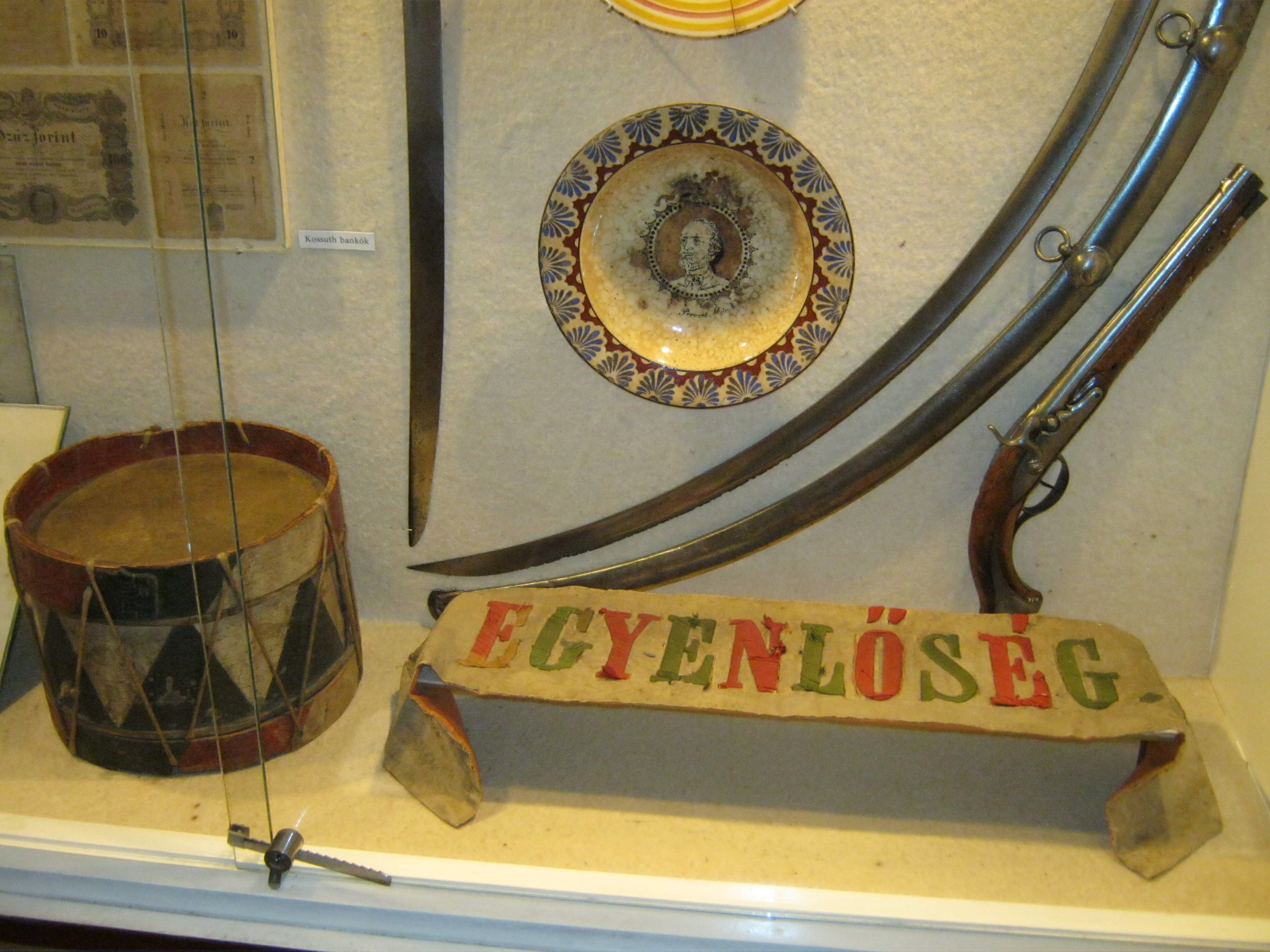 Nyilvános 1041 | 1429 | Nyírbátor, Károlyi utca 21. Báthori István Múzeum | A minorita kolostor épültét 1959-ben kapta meg a múzeum. Első igazgatója, Szalontai Barnabás áldozatos munkája nyomán két év múlva már meg is nyílhatott benne az első kiállítás. A képen 1848/49-es relikviák láthatók. Felh. irod.: Látnivalók Szabolcs-Szatmár-Bereg megyében. Miskolc, Well-PRess, 1999 www.nyirbim.hu |