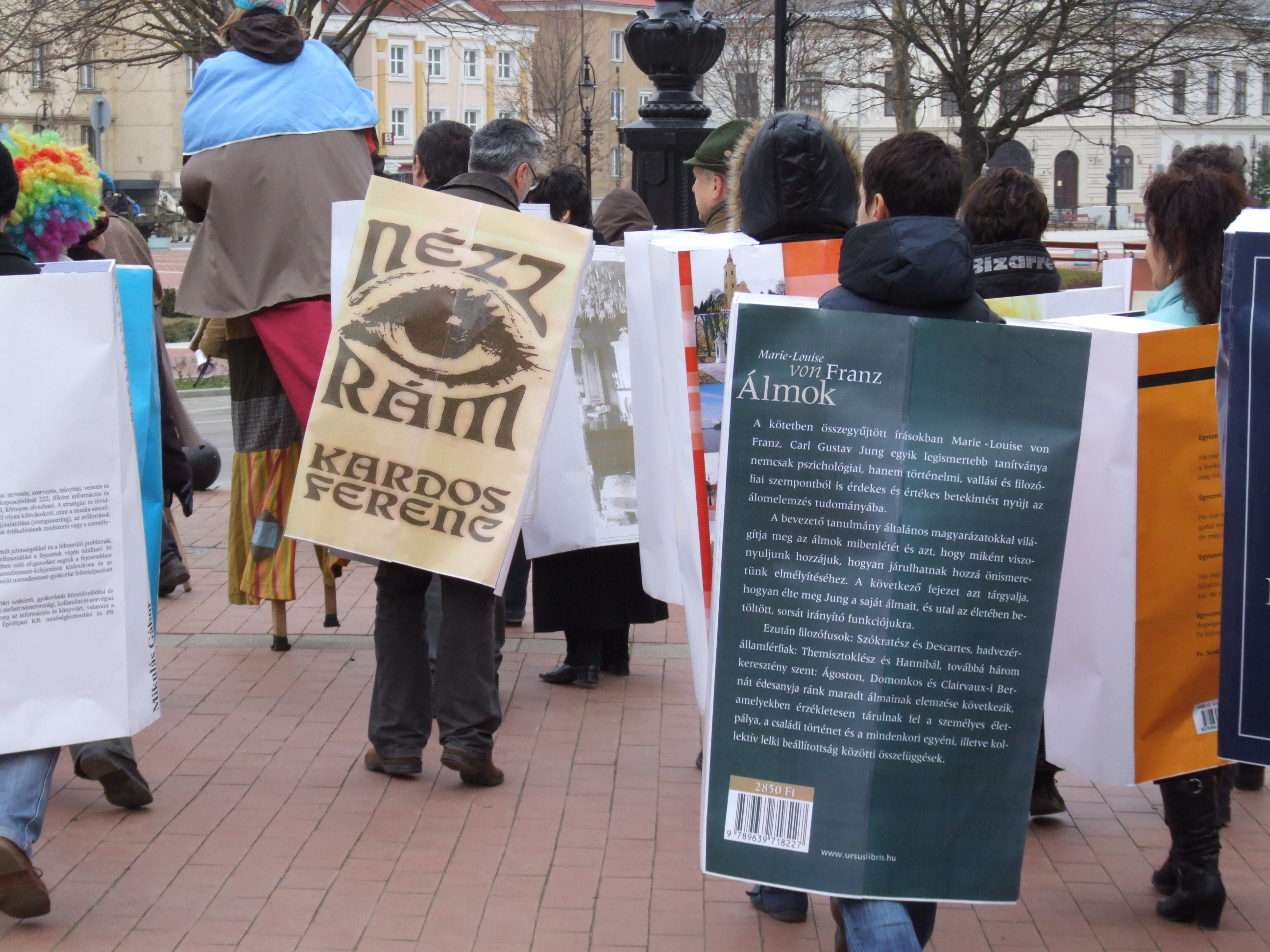 Nyilvános 1076 | 1528 | 2013. február 9. A farsangi fánkfesztiválra készülve felhívásban kértük olvasóinkat, hogy öltsék magukra kedves könyvüket. Egy „könyvespolcnyi” jelentkező vette magára kedves olvasmányát, az ő vonulásukról készültek ezek a képek. A környezetükben néhol láthatók a Nagykanizsai Gólyalábasok, akik szintén a könyvtárhoz kötődnek. A „felvonuló kötetek” a könyvtár épületében még megtekinthetők. | |