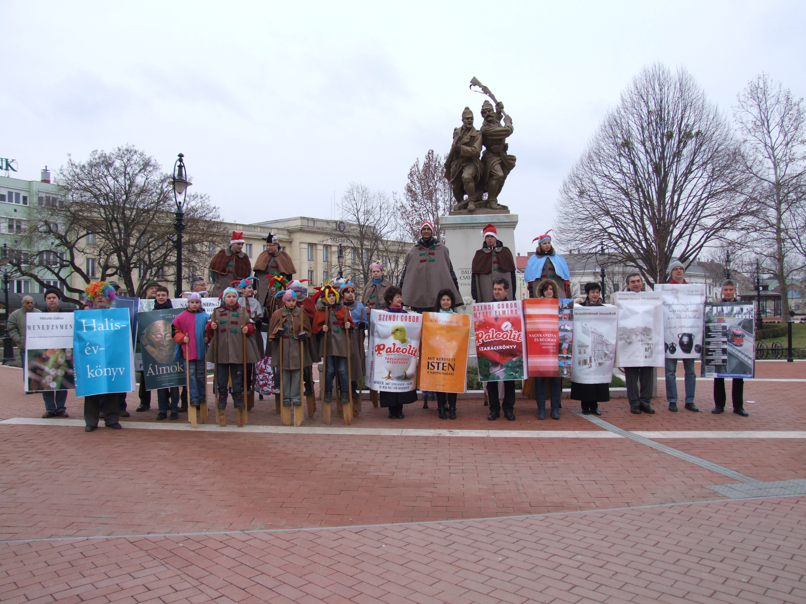 Nyilvános 1007 | 1451 | 2013. február 9. A farsangi fánkfesztiválra készülve felhívásban kértük olvasóinkat, hogy öltsék magukra kedves könyvüket. Egy „könyvespolcnyi” jelentkező vette magára kedves olvasmányát, az ő vonulásukról készültek ezek a képek. A környezetükben néhol láthatók a Nagykanizsai Gólyalábasok, akik szintén a könyvtárhoz kötődnek. A „felvonuló kötetek” a könyvtár épületében még megtekinthetők. | |