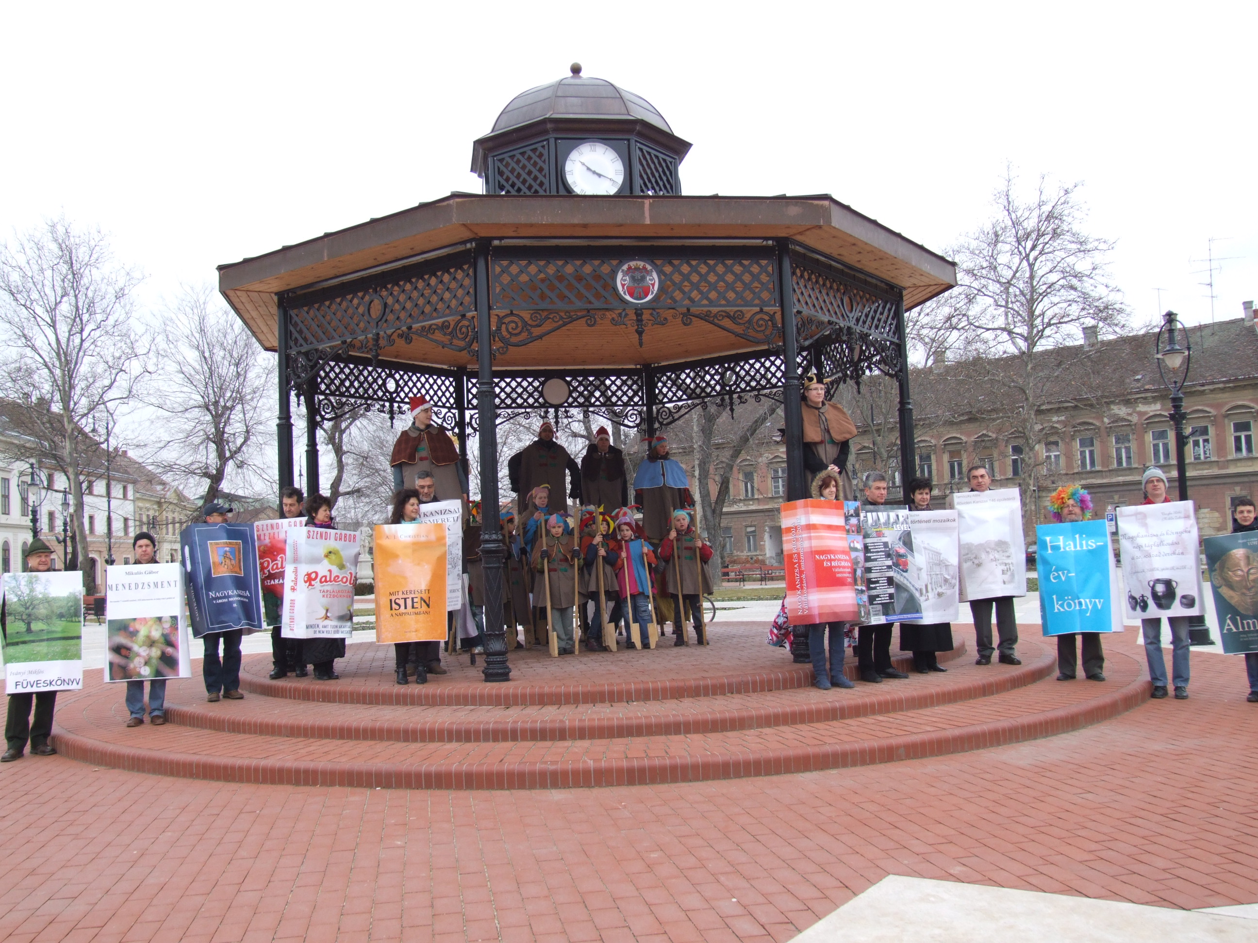 Nyilvános 1072 | 1419 | 2013. február 9. A farsangi fánkfesztiválra készülve felhívásban kértük olvasóinkat, hogy öltsék magukra kedves könyvüket. Egy „könyvespolcnyi” jelentkező vette magára kedves olvasmányát, az ő vonulásukról készültek ezek a képek. A környezetükben néhol láthatók a Nagykanizsai Gólyalábasok, akik szintén a könyvtárhoz kötődnek. A „felvonuló kötetek” a könyvtár épületében még megtekinthetők. | |