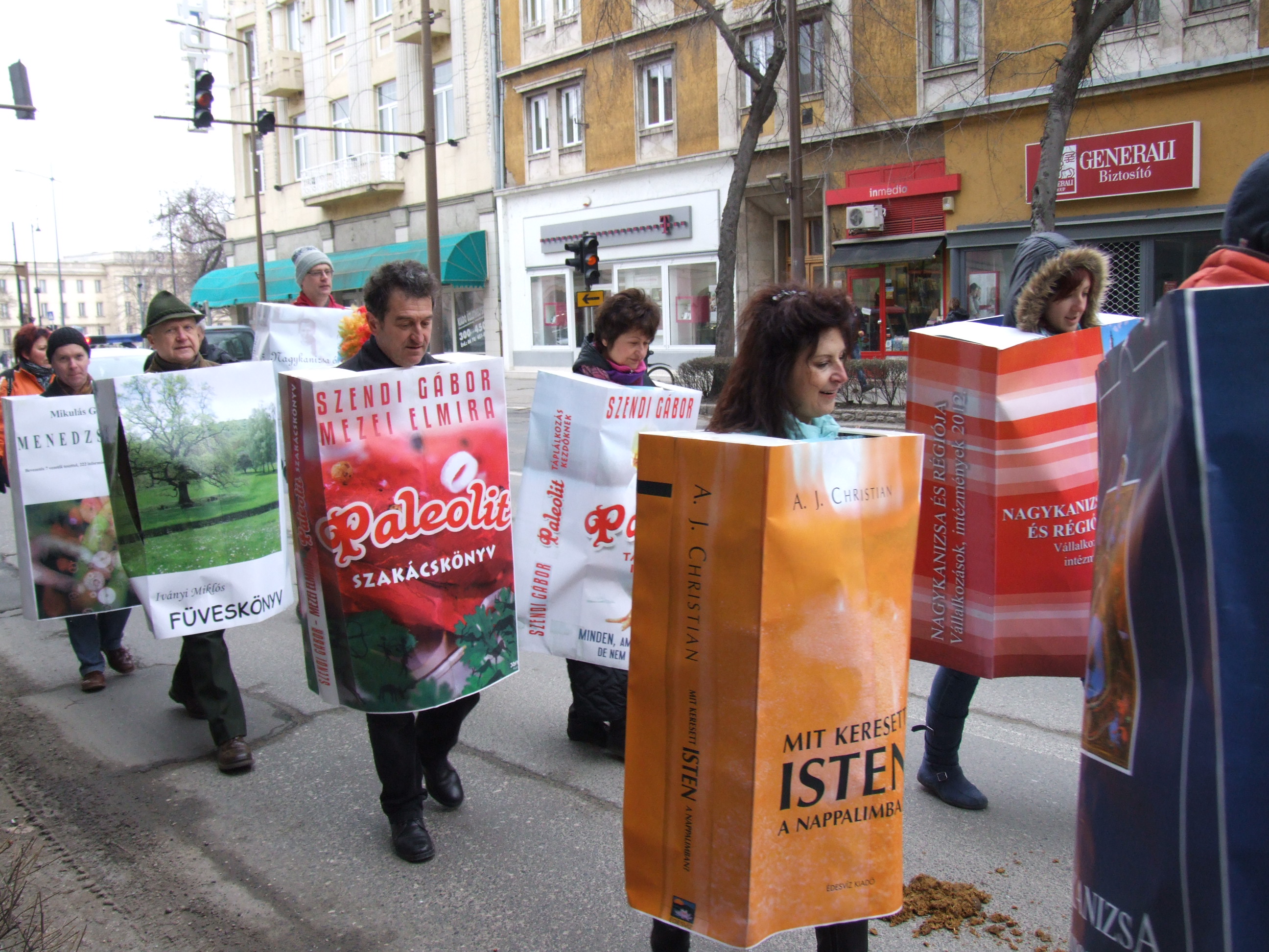 Nyilvános 1067 | 1411 | 2013. február 9. A farsangi fánkfesztiválra készülve felhívásban kértük olvasóinkat, hogy öltsék magukra kedves könyvüket. Egy „könyvespolcnyi” jelentkező vette magára kedves olvasmányát, az ő vonulásukról készültek ezek a képek. A környezetükben néhol láthatók a Nagykanizsai Gólyalábasok, akik szintén a könyvtárhoz kötődnek. A „felvonuló kötetek” a könyvtár épületében még megtekinthetők. | |