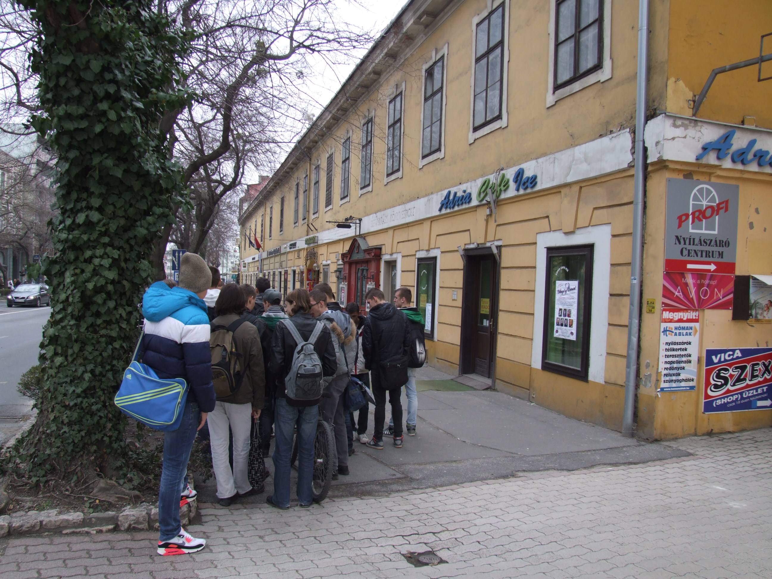2014.03.05. Cserháti iskolások (10.c) a Korona szállónál 07.JPG