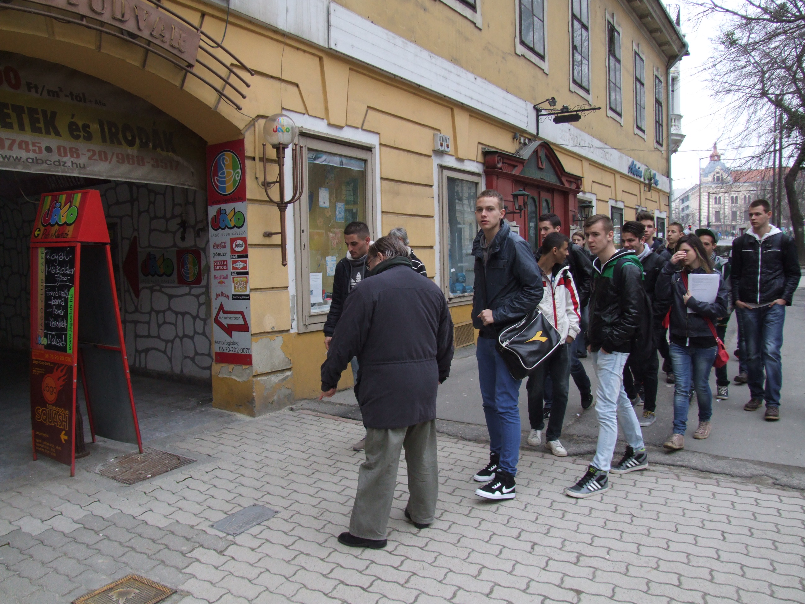 2014.03.05. Cserháti iskolások (10.c) a Korona szállónál 09.JPG