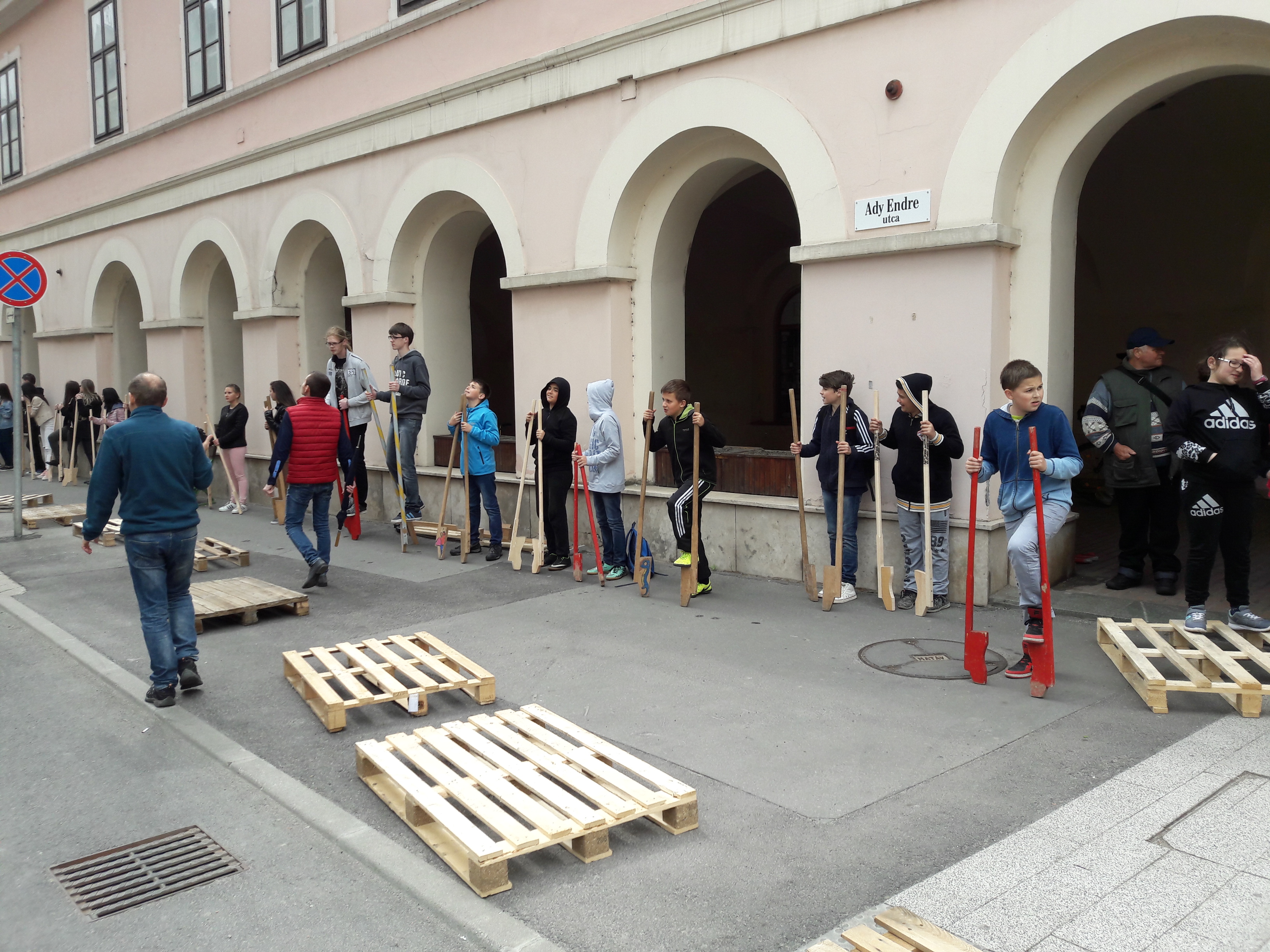 2017.04.27. Tömeges gólyalábra állás a Fő út - Ady u. kereszteződésében