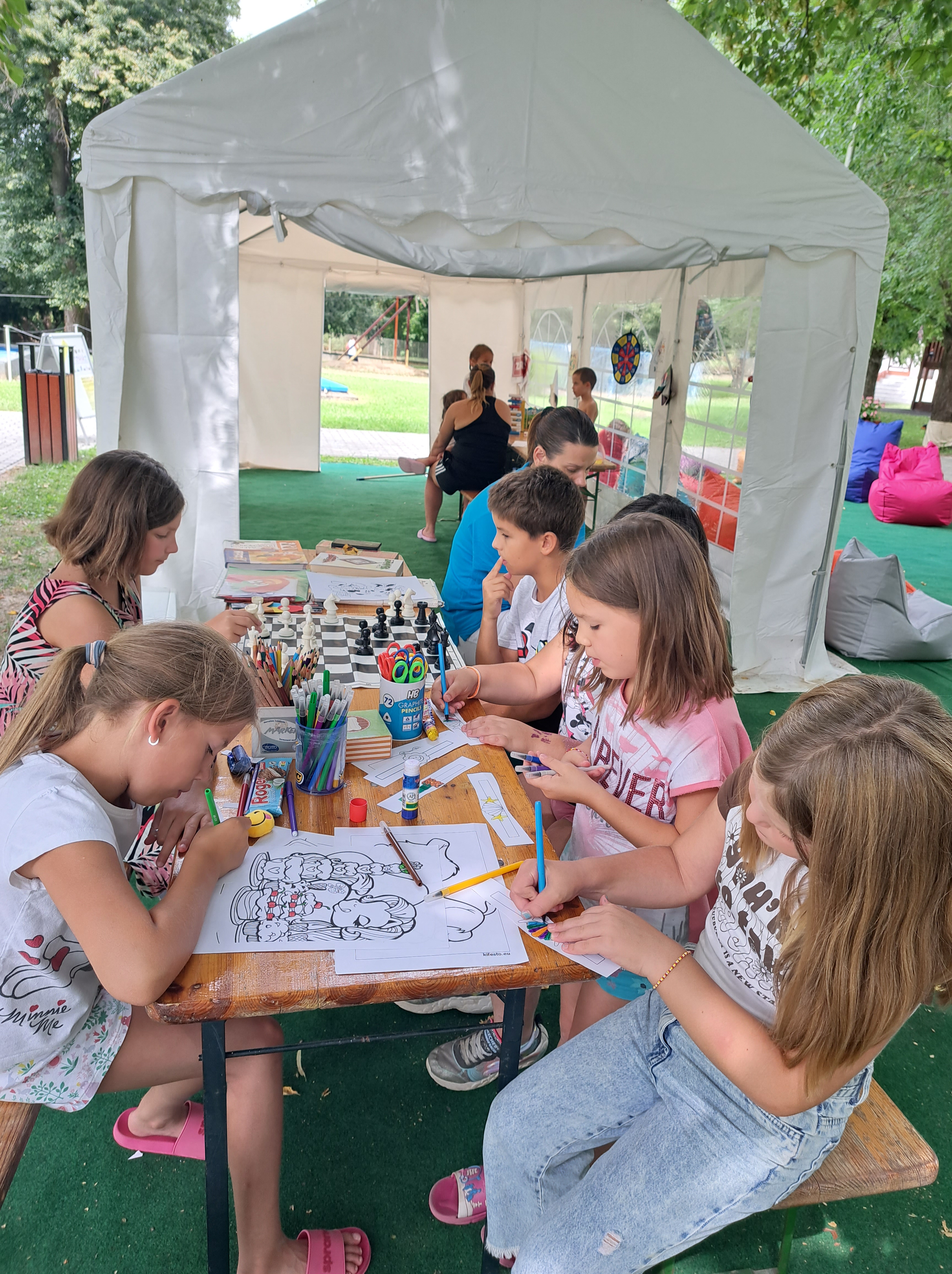 2023.08.16. Strandkönyvtár sakkozás, kézműves foglalkozás